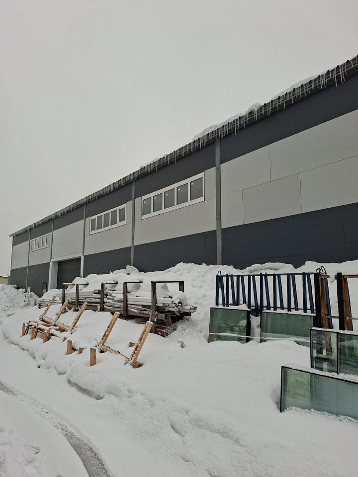 Производственно-складской комплекс 960 м2, тёплый, Н = 7,5 м. Электрич. 150 кВт. Вода – скважина. Канализация – септик. Отопление – своя котельная на пелетах. Кран-балка 10 т. Высота до крюка крана 5 м. Полы – Антипыль. Ворота в нулевой уровень. Земли 0,32 га + (0,32 га) в собственности, промназначения, огорожено. Цена: 88.000.000 руб. (УСН)
