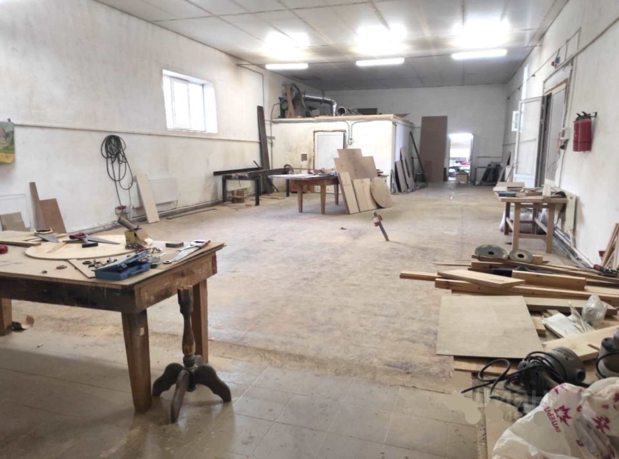 Полы – бетон и плитка. Ворота в «нулевой» уровень. Имеется покрасочная камера с вентиляцией.