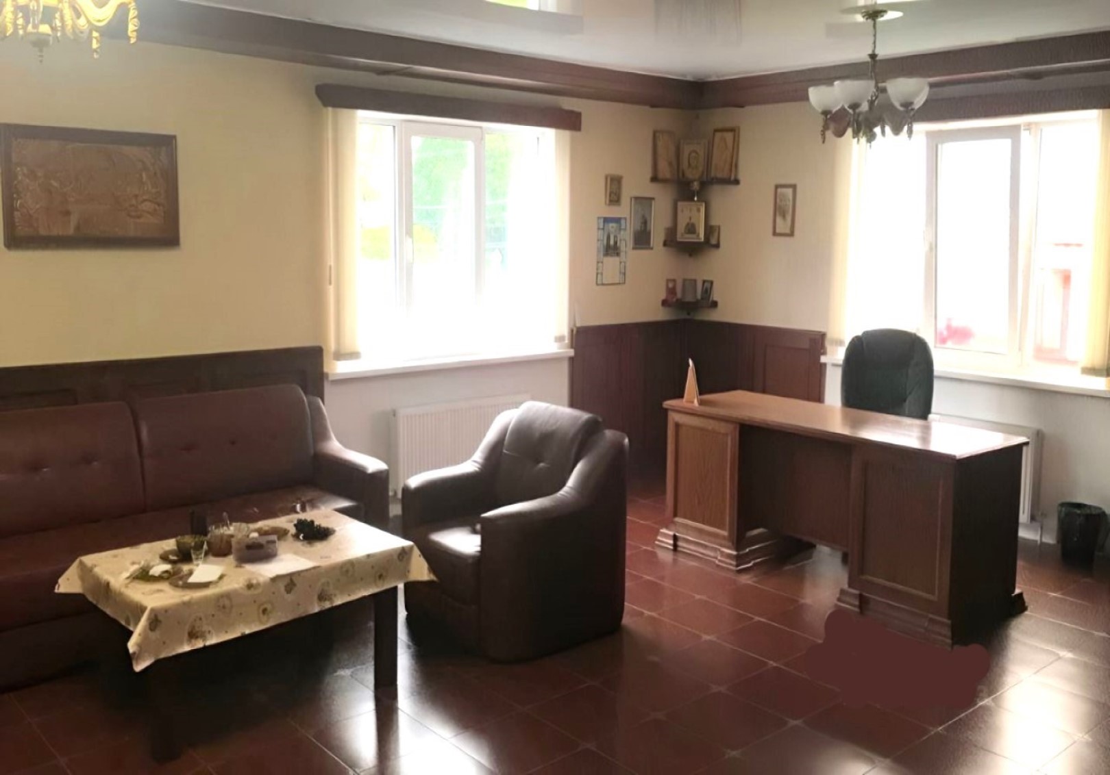 Встроенные офисы 200 м2 (кухня, кабинет с несколькими спальнями, выставочный зал, душ, санузлы).