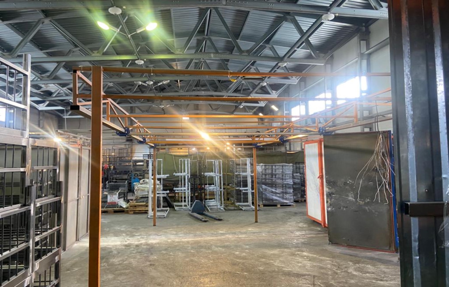 Полы – Антипыль и бетон. Кран-балка 3 т. Ворота в «нулевой» уровень.