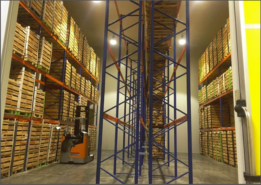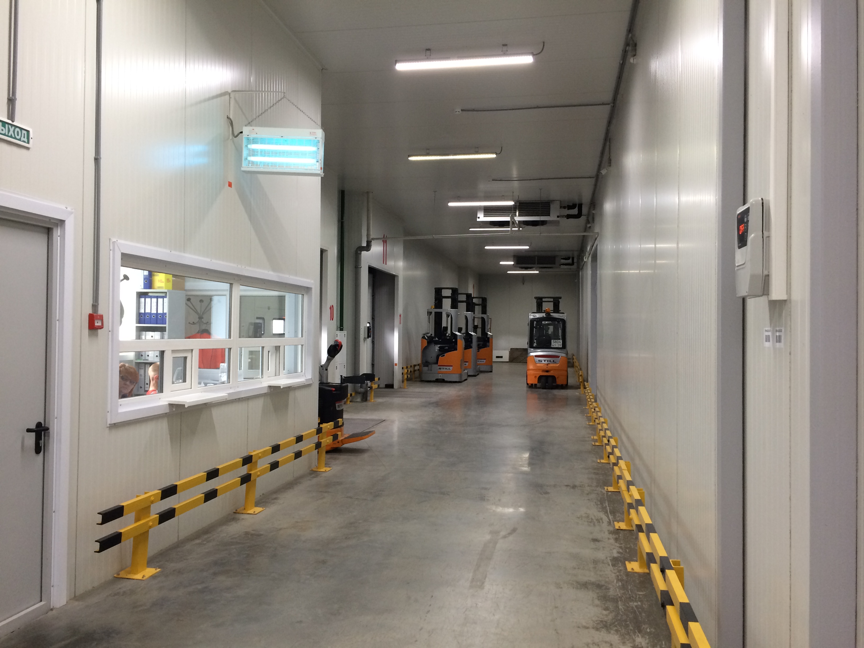 Имеются камеры шоковой заморозки – 35 0С и РГС. Четыре яруса высотного хранения.